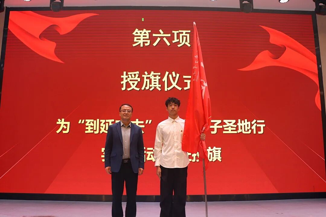总结表彰大会后,马书记为“到延安去”·三秦学子圣地行实践活动出征授旗,要求全校相关职能部门和各学院要积极落实学校关于组织大学生“到延安去”·三秦学子圣地行活动方案。勉励广大学子要牢记初心使命,传承红色基因,弘扬延安精神,在追寻革命足迹中坚定理想信念,在深入基层实践中锤炼过硬本领,真正把对党的忠诚、对祖国的热爱,转化为扎根基层、服务人民的自觉行动。