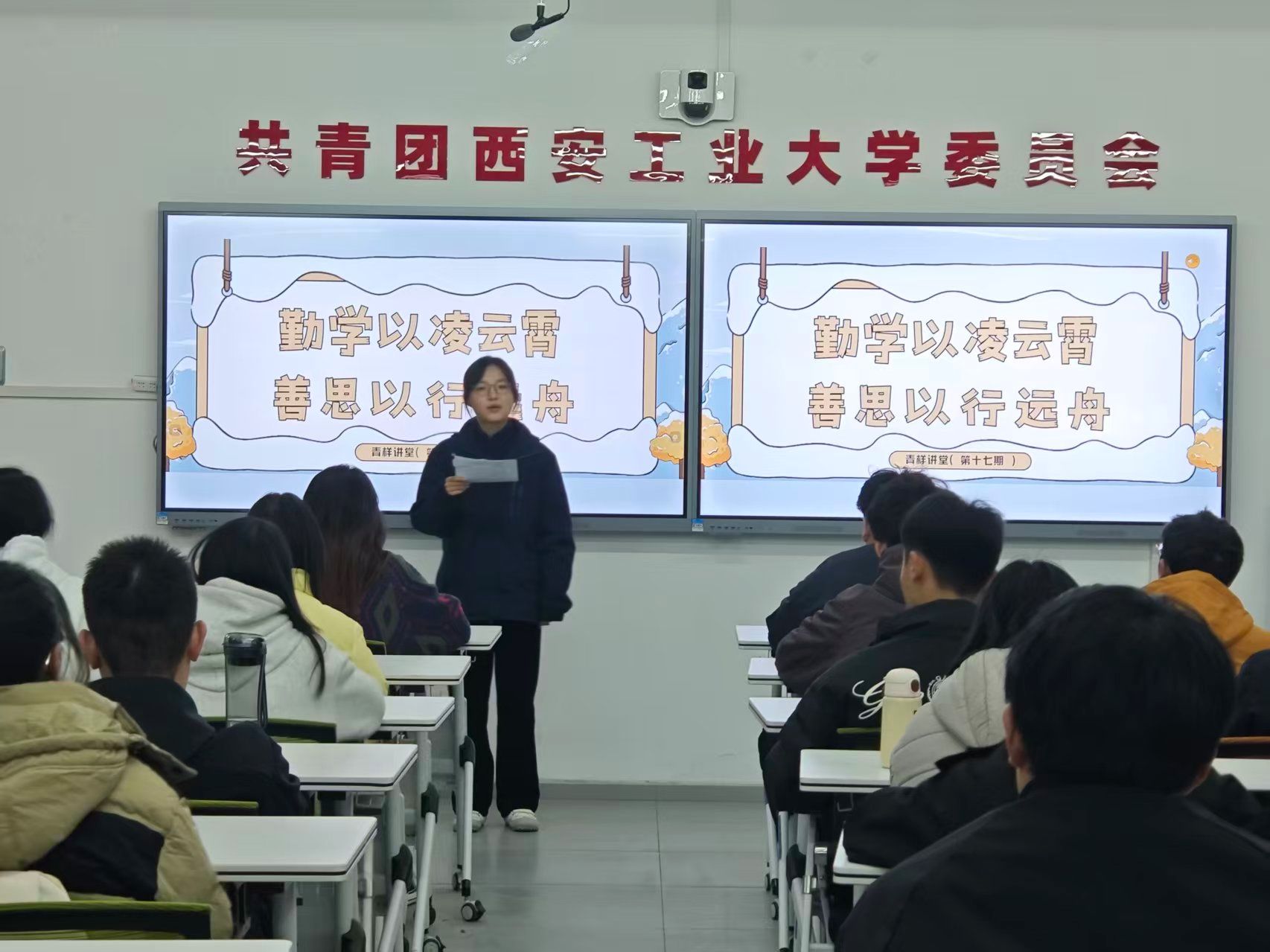 2025年12月3日,第十七期“青样讲堂”在大学生活动中心301成功举行。本期青样讲堂以“勤学以凌云霄,善思以行远舟”为主题,旨在激发同学学习兴趣、分享高效学习方法,树立“敢于探索,勇于突破”的学习精神,邀请张锦叶同学担任主讲人,60余名同学参与本次活动。