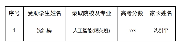 根据《关于联合开展第二十八届“芙蓉学子”公益助学项目的函》相关要求,经学生个人申报、所在学院资格审核评定、校团委审议等程序,拟推荐增补以下1名同学获得该项目资助。现将推荐名单予以公示: